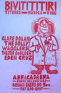 We have been honored to participate in several Cantastoria and Cranky gatherings hosted by our esteemed friends Claire Dolan and Dave Buchen. Here is the the poster from Banners and Cranks, NYC and Bi-Vitititiri, Puerto Rico, both posters made by Dave Buchen:
