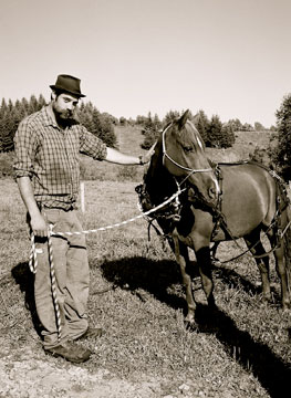 Best Man and Concertina take off at a trot from Mike and Sloane’s farm in Greensboro, VT