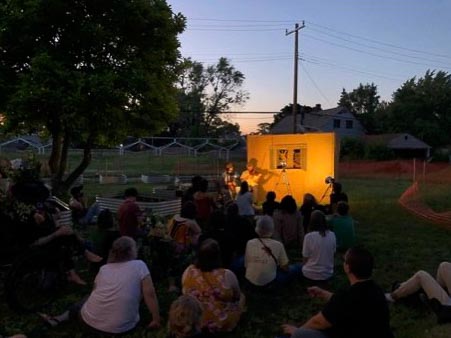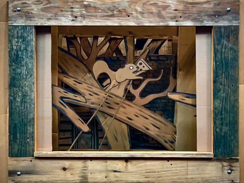 2021. An experiment in making an all-cardboard show about under-appreciated animals. We used images from our surroundings in East Detroit: pizza toting squirrels. A story of what might be happening behind the scenes emerged and it took us all the way to outer space. We collaborated with musicians Joel Jackson and Walter Prettyman. Written, Directed and puppets made by Jason Hicks, Lindsay McCaw and Kristi Ternes. This show debuted at the Detroit Puppet Slam.