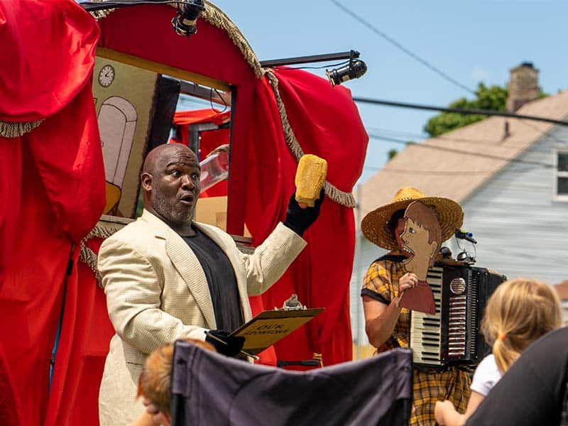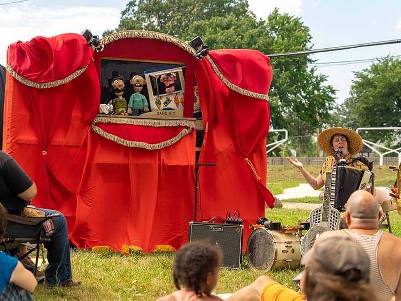 2022. Our current show-in-progress. An all-ages show about a young Detroit artist named Dimitri. He goes on a wild adventure all over Detroit and Belle Isle when his cat is mistakenly abducted by an ice cream truck driver. He meets many different people, plants and animals on the way.